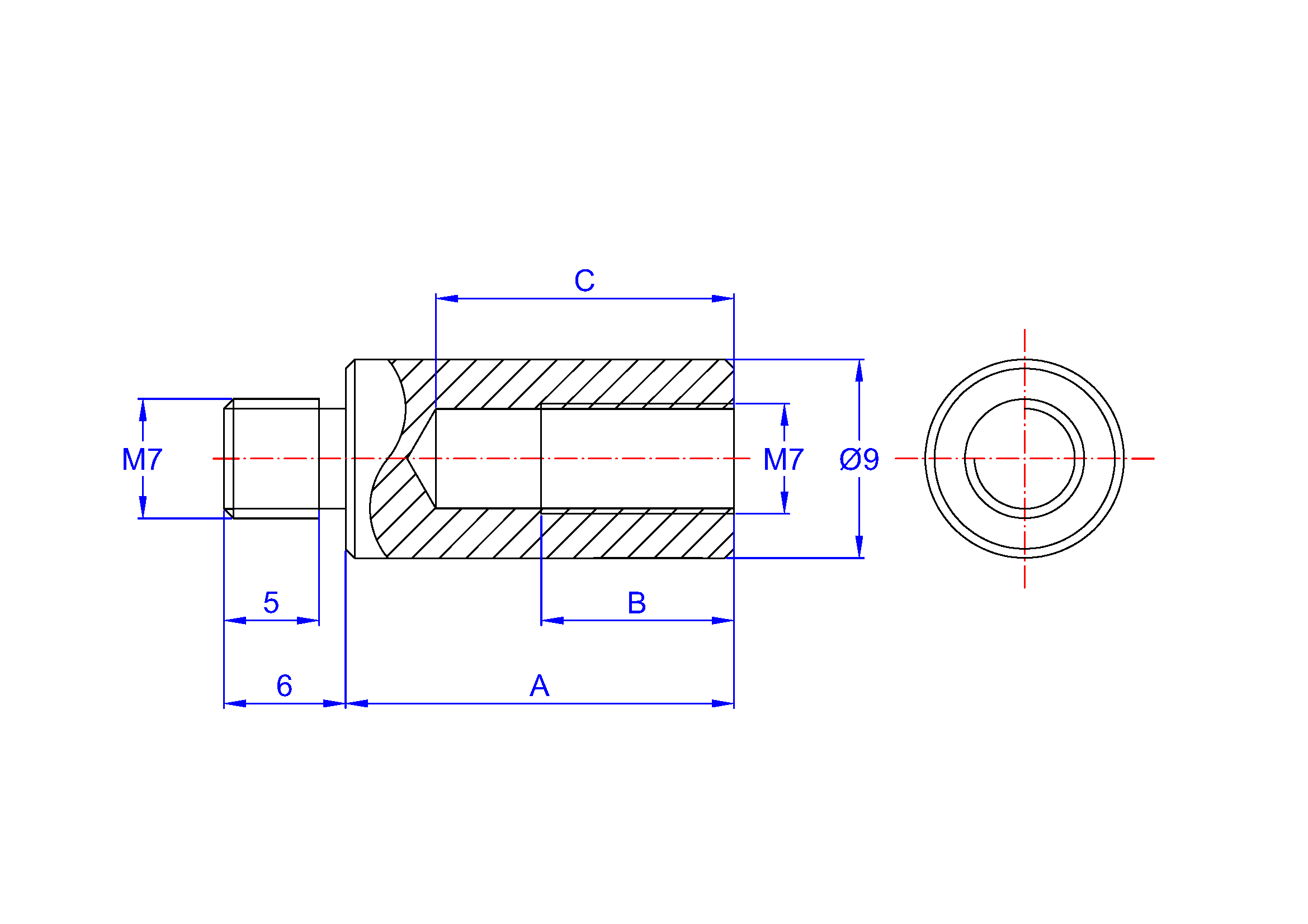 AB-PM7 [CP] Tirafondo abrazadera y grapa. Prolongador cilíndrico para abrazaderas M7