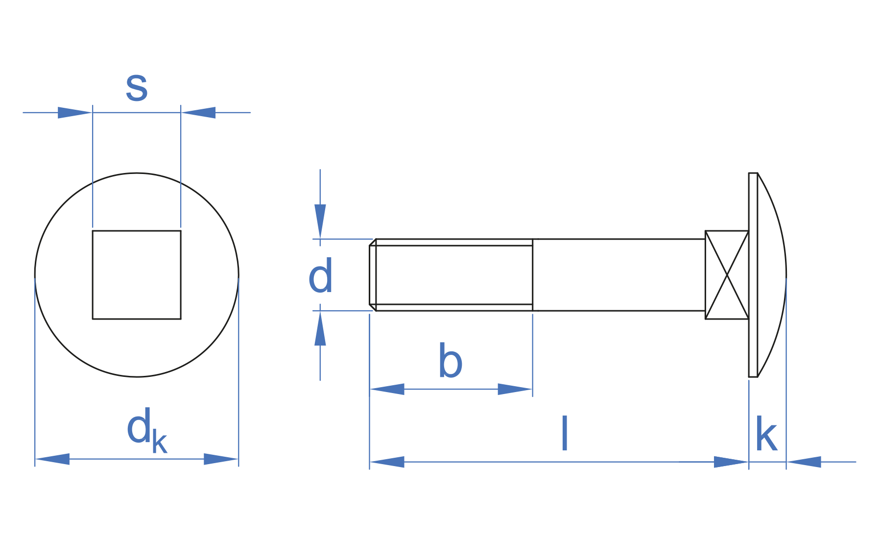 DIN-603/934 [BL] Tornillo con cabeza redonda con cuello cuadrado y tuerca hexagonal. Zincado