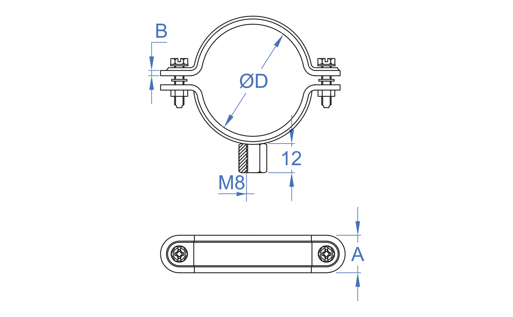 AB-RI [CP] Abrazadera isofónica reforzada M8 + M10. Zincada