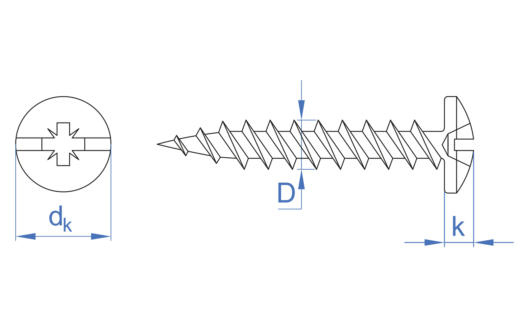 TR-PO [CP] Tirafondo de cabeza alomada, bicromatado. Huella PZ