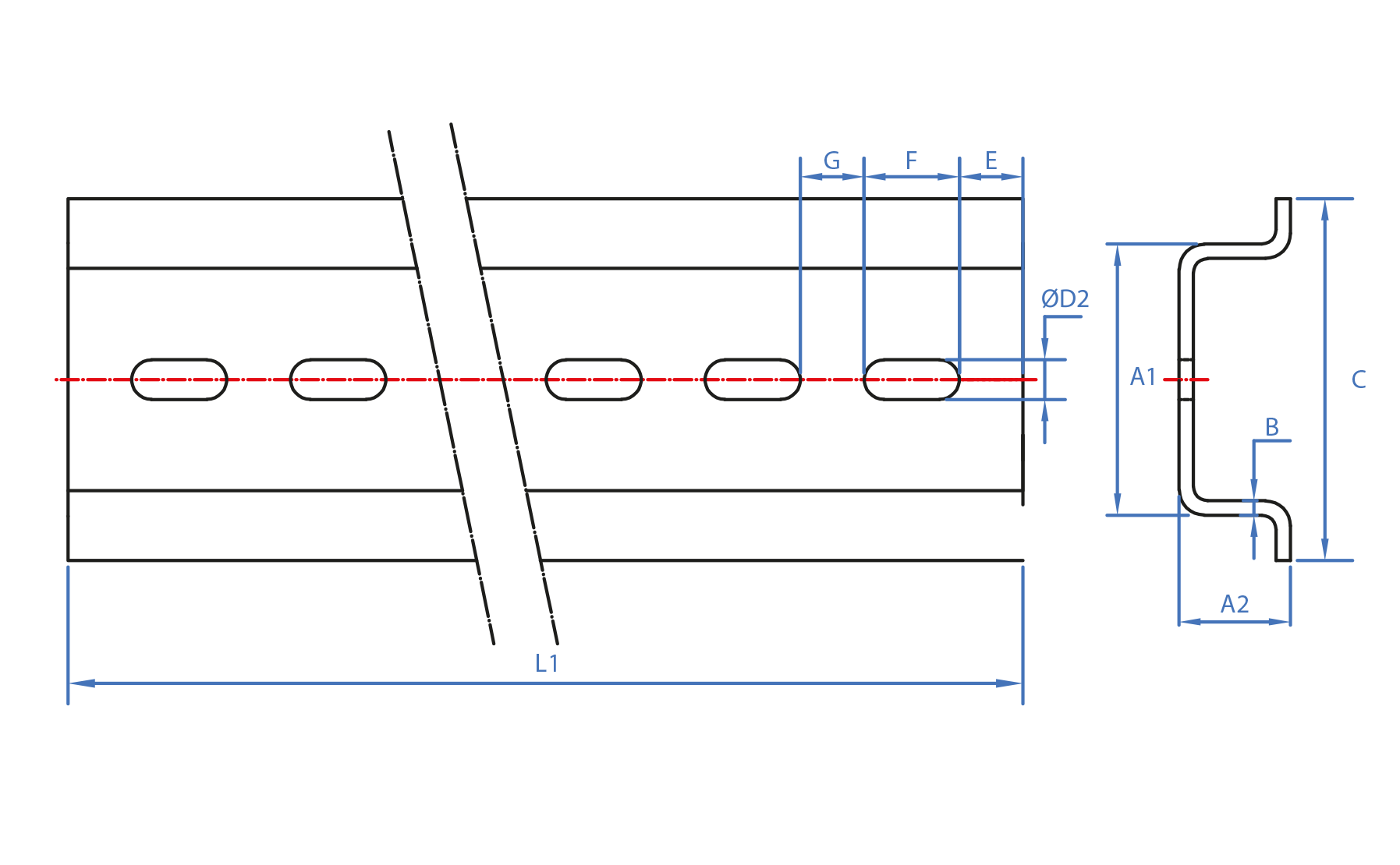 GP-O [CP] Perfiles para cargas ligeras tipo "C". Guía Omega perforada ATLANTIS C2-M