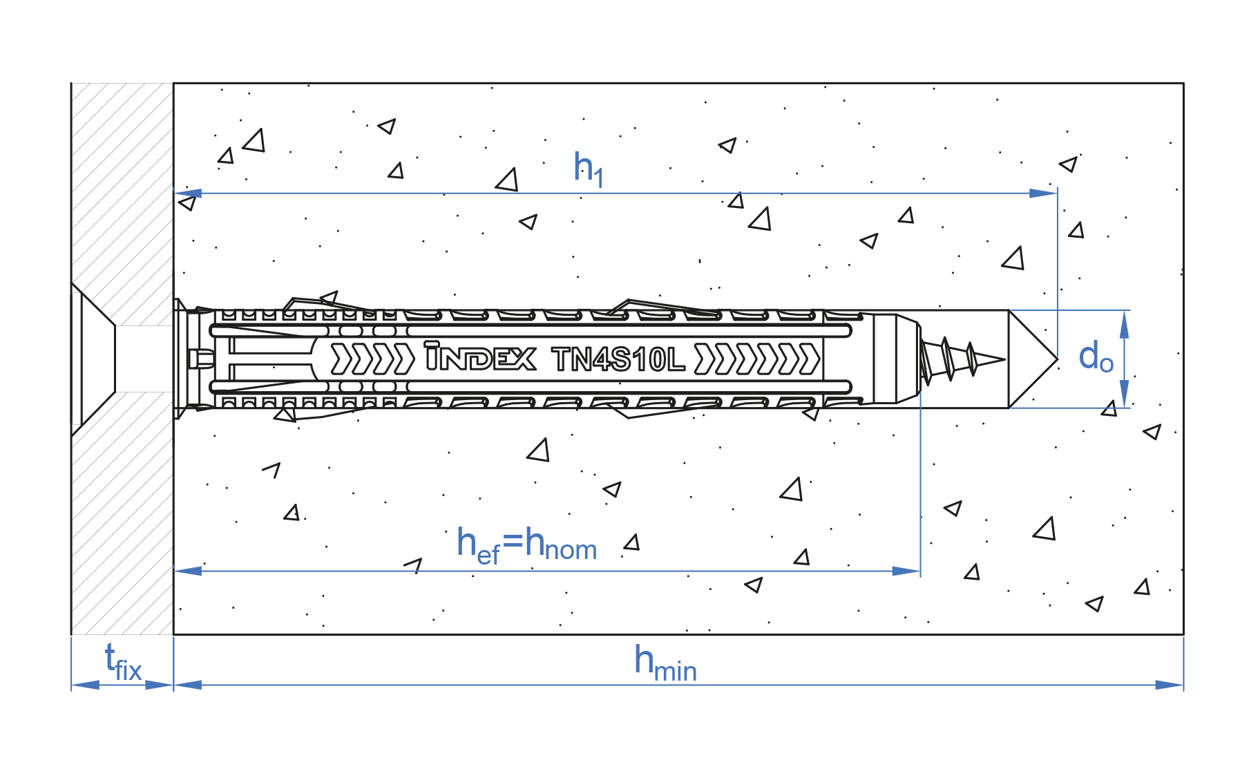 T-NUX A [CP] Taco de nylon universal de alto rendimiento. Cabeza avellanada. Huella TX. Zincado. Homologado ETE